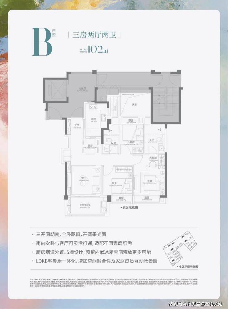 高层:建面约102㎡(3房2厅2卫)