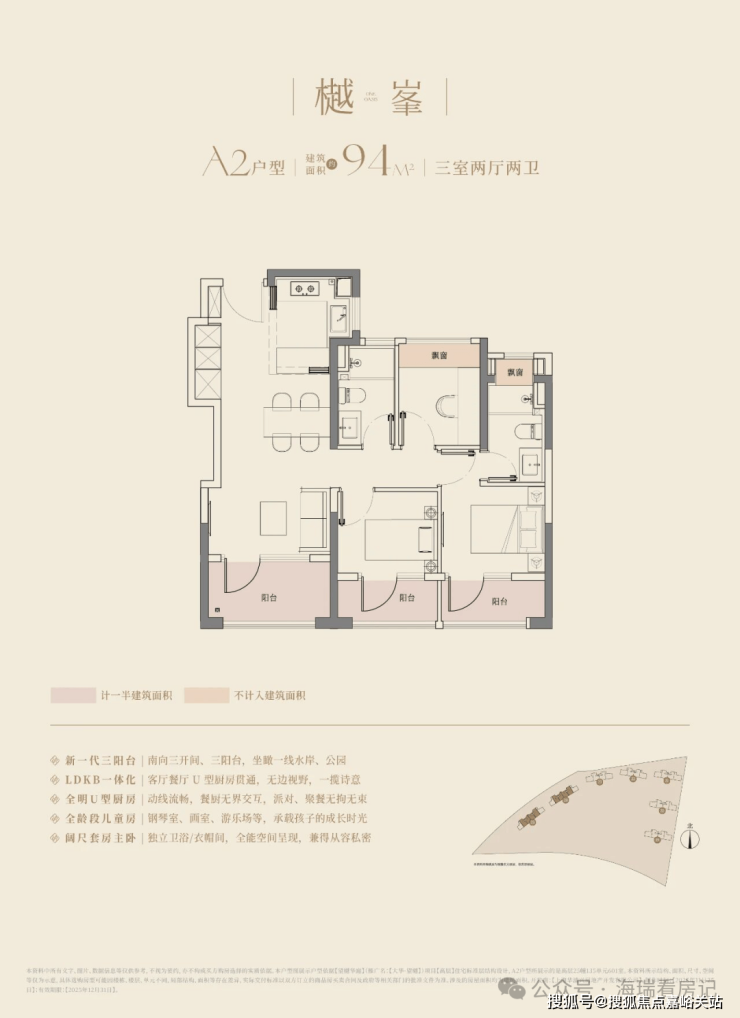 在这里,高层建面约94㎡户型做到了惊人的三阳台,对比同板块内以前的标杆小区,同面积段户型只做了1个阳台。不仅数量发生质的变化,实得面积也大大增加。