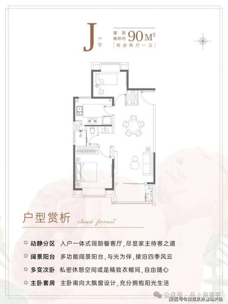建面约90㎡2房1卫户型,对于预算有限但是想要入住黄浦江沿岸、入住三轨交TOD,享受前滩繁华的购房者来说,这个户型非常值得一看。