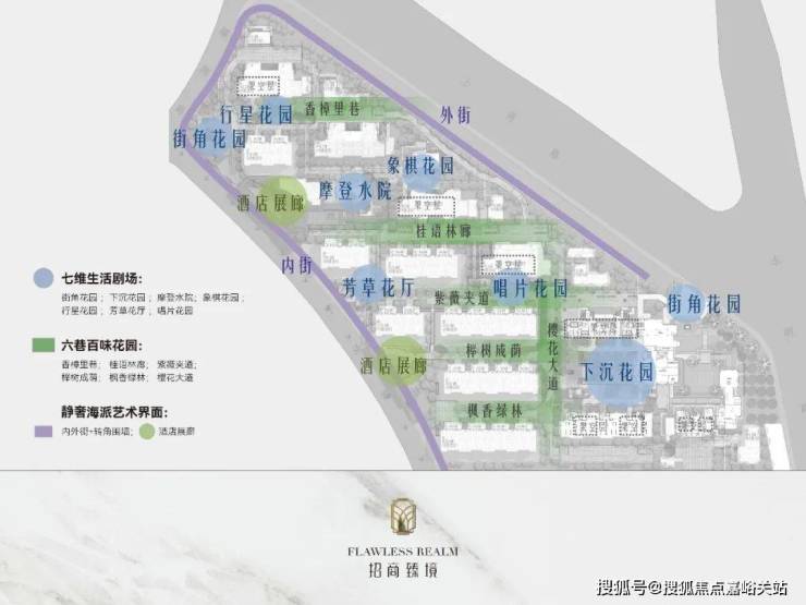 #招商臻境精心规划了七维生活剧场,包括:街角花园、摩登水院、下沉花园等七重生活场景,营造四季分明、美景如画的精致水岸归家之路。