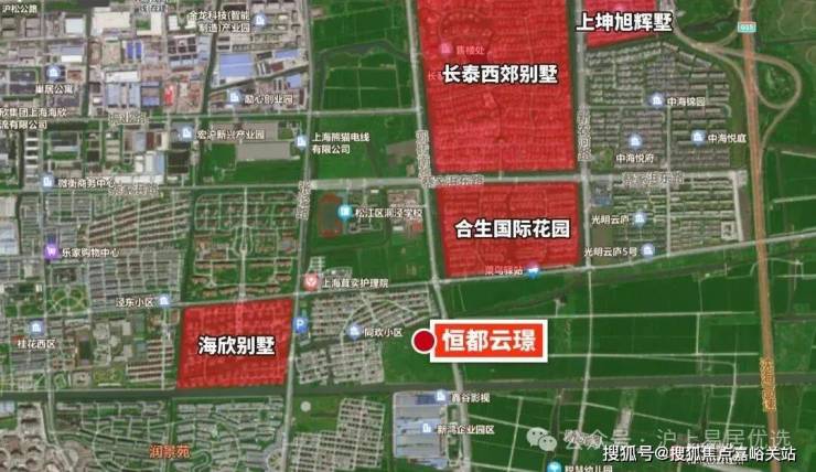 去年7月,恒都置业以总价128400万元拿下的松江区新桥镇SJS30003单元12-13号(砖新河一号)地块,容积率1.2,楼板价23000元/㎡,房地联动价52000元/㎡,中小套比例不低于60%,住宅套数下限574套。也就是现在的恒都·云璟。项目周边别墅社区居多,居住氛围静谧,邻里非富即贵。