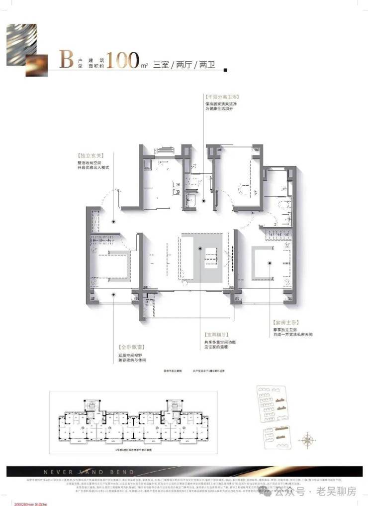 建面约100㎡宽厅三房,改善家庭至优选:在南向三开间的基础上,该户型“创新横向宽厅,营造百平米少有的客厅尺度“打造3.5南向面宽。