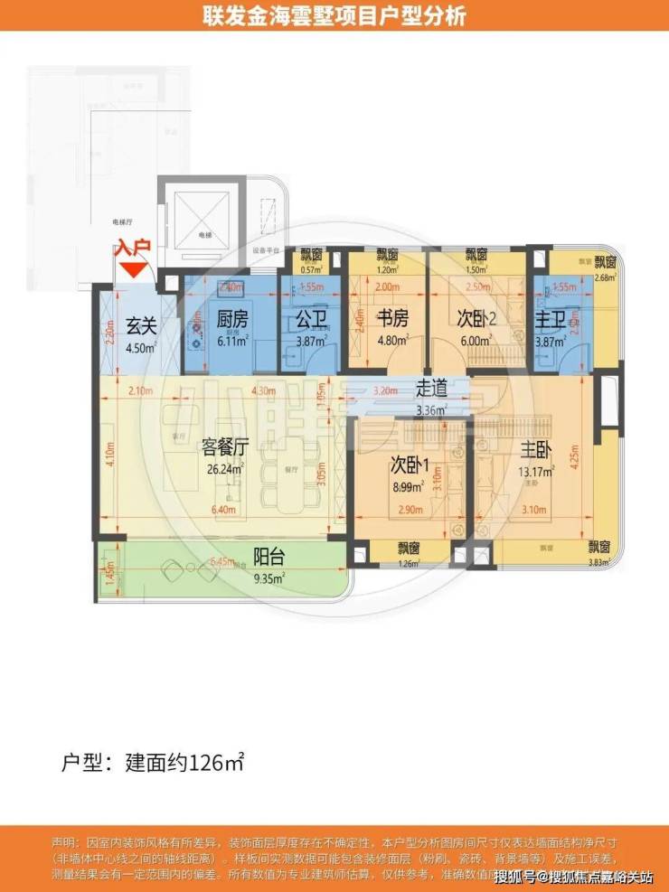 其次,112㎡做到了三开间朝南、三房两卫,全明格局,南向面宽超10米;