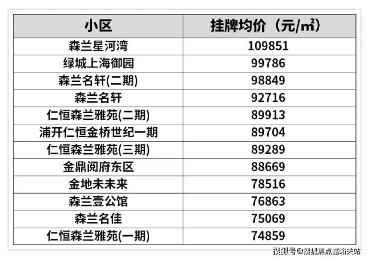 最贵的森兰星河湾接近11万/㎡,这是天花板。