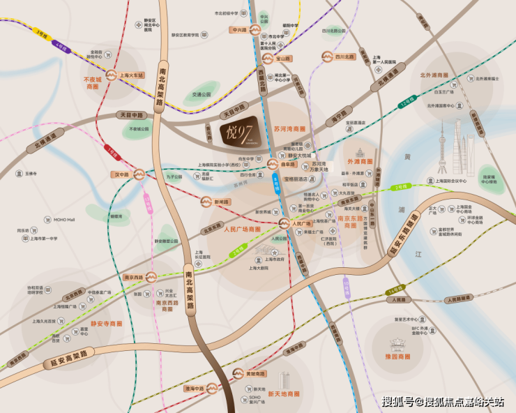 🛍️ 商业: 与静安大悦城一街之隔(约300米),近 苏河湾万象天地 (约900米),2公里内覆盖人民广场、南京西路商圈,日常购物、社交一站式满足