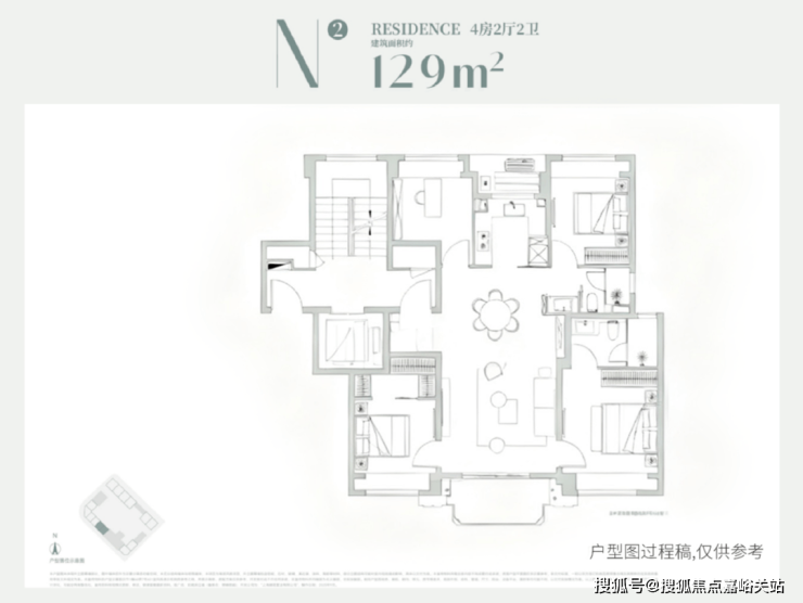 经典的四叶草布局,四开间分布在四角 ,兼顾私密与互动,是二胎家庭的优选。