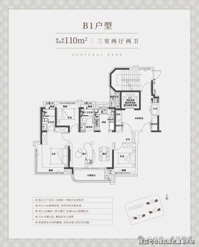 建面约110㎡中间套竖厅户型,同样也是标准的南北通透飞机户型,整体室内的采光、尺度感、通风都相当出色。非常适合一家三口、年轻夫妻的全生命周期需求!中环铂樾售楼处电话:400-8894-638☑☑☑