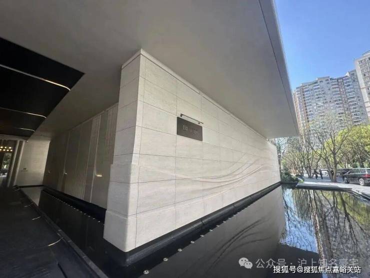 稍微走近一点, 就能看到采用了大量的 弧形元素和石材材料 ! 石材的质感本身就厚重,在上面叠加类似海浪的线条弱化了厚重感,反而显得轻盈!