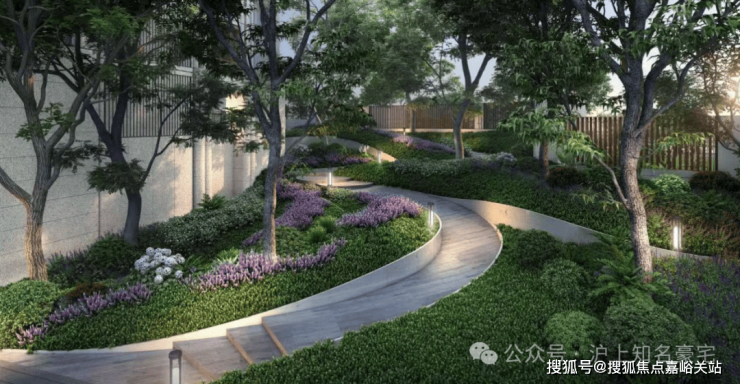 通过多级抬高的坡地,堆坡造园,呈现类似旧金山九曲花街的观感,每一段起伏都是精心设计的场景体验!
