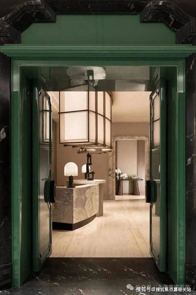 “真正的国际化是让本土基因自然生长。” 设计师说。手绘图样经数字化转译为墙面肌理,灰绿与暗红以几何切割形成视觉通感。