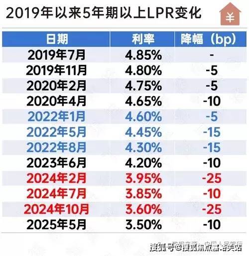 2025年5月20日央行宣布下调政策利率0.1个百分点,带动LPR下行0.1个百分点。这是2025年首次也是年内唯一一次LPR调整。