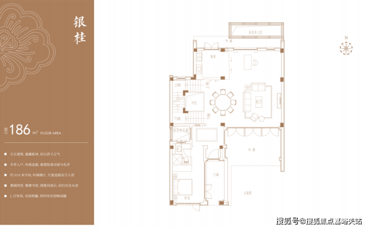 房屋实际可用面积要比户型图标注面积大一些,以“丹桂”户型为例,户型图标注的建筑面积为185m²,但是层高达到9.9m,未来完全可以搭建二层,搭建后,地上使用面积可以达到约280m²左右。