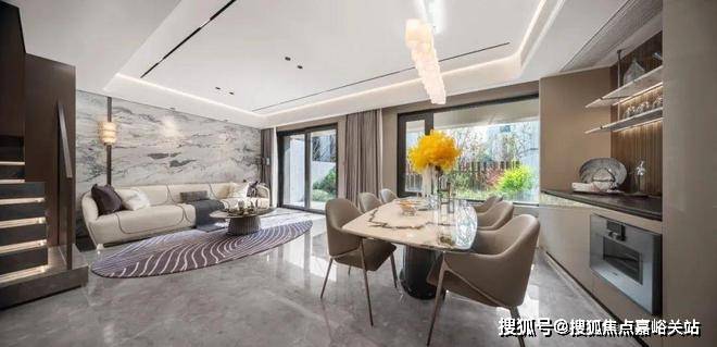 一层是会客区,大平墅的空间感,大横厅设计,大华梧桐院售楼处电话➡☎:400 - 8824 - 258【24小时预约快线】客餐厅相对独立,将生活的奢度打开!