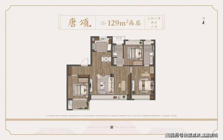 The layout design of the Jianfa Guantang Mansion project is highly praised, with a 129 square meter 3+1 room, which not only maintains the traditional advantage of Jianfa's layout: a south facing large bay! Master bedroom luxury suite!