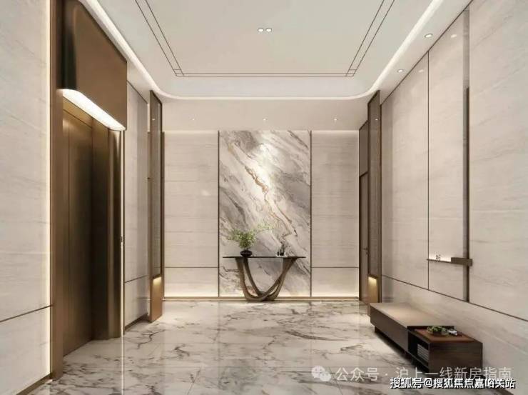 :挑高 6.8 米的入户大堂,地面采用 “水刀拼花” 工艺(图案为闵行 “黄浦江支流” 抽象造型),墙面悬挂上海本土艺术家创作的《闵行新貌》油画,大堂中央摆放定制款 “白玉兰造型” 艺术雕塑,营造 “回家即享艺术展” 的仪式感;