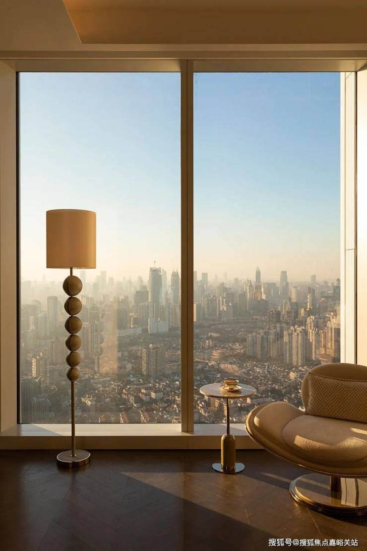 走道端处香槟色金属雕塑,形类城市高楼,又若恋人彼此依偎;全采光套房拥揽白日上海黄浦的忙碌、繁华,也收藏夜晚灯火阑珊的宁静、美好。
