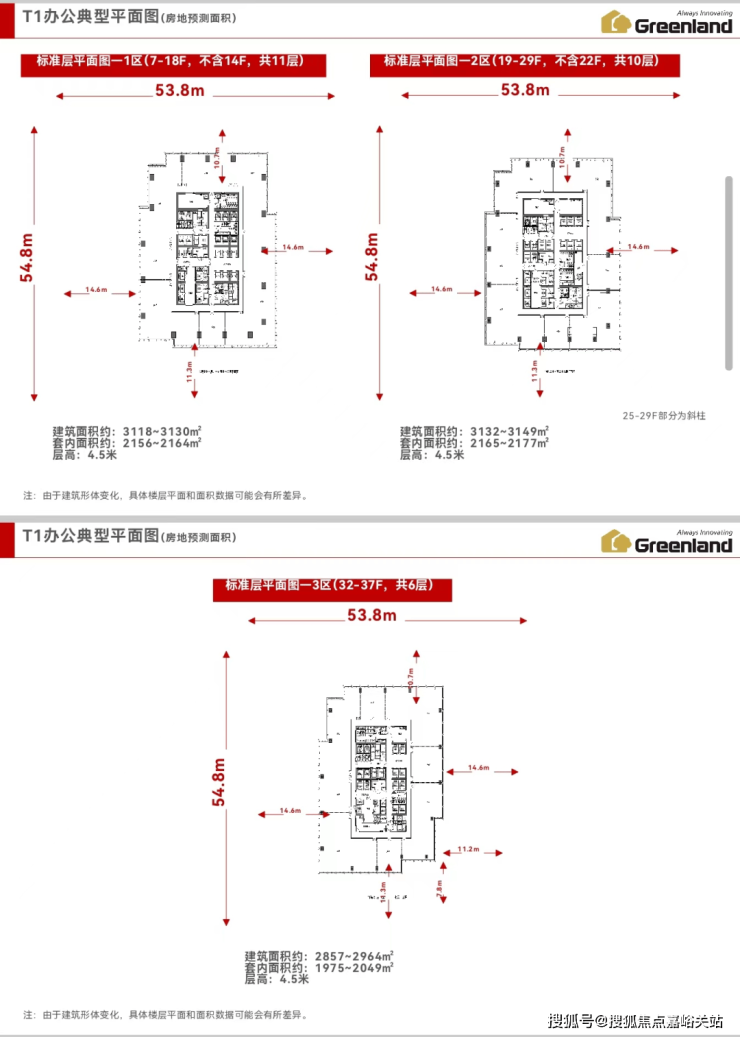 T1 -300米超高层塔楼上部46-62层为五星级酒店(丽思卡尔顿)、38,40-45层行政公馆,中部7-37层为甲级办公,底部为商业及大堂。