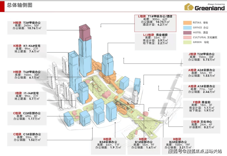 其中4栋超高层,分别为300米、240米以及2栋150米塔楼组成。