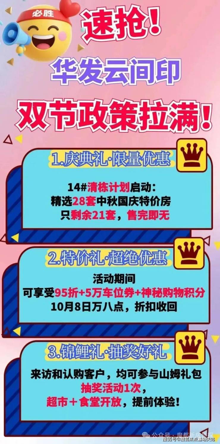 一口价房源外,所有产品95折、赠5万车位抵用劵,神秘购物积分!