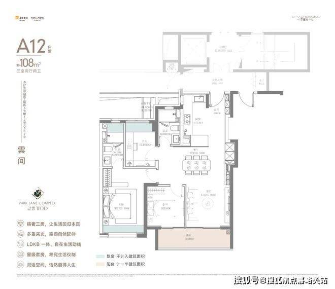 而建面约108㎡的明星户型,则在有限的空间内做到了尺度感与舒适度的最大化。横跨客厅与次卧的巨型宽面阳台,采光面极为奢侈