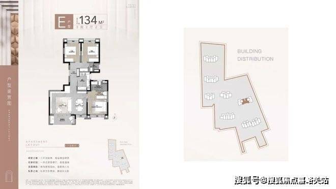在社区功能布局上,构建了四大功能区域:包括三个入口轴线和一个中心水轴;三大花园空间:中心港湾花园、水溪花园以及西入口归家花园;五大运动活力系统:热身区、定制主题儿童活动区、老年健身区、活力健身区以及休憩缓冲区,这些区域由约400米的跑道相互连接;泛会所:坐落于5号架空层。