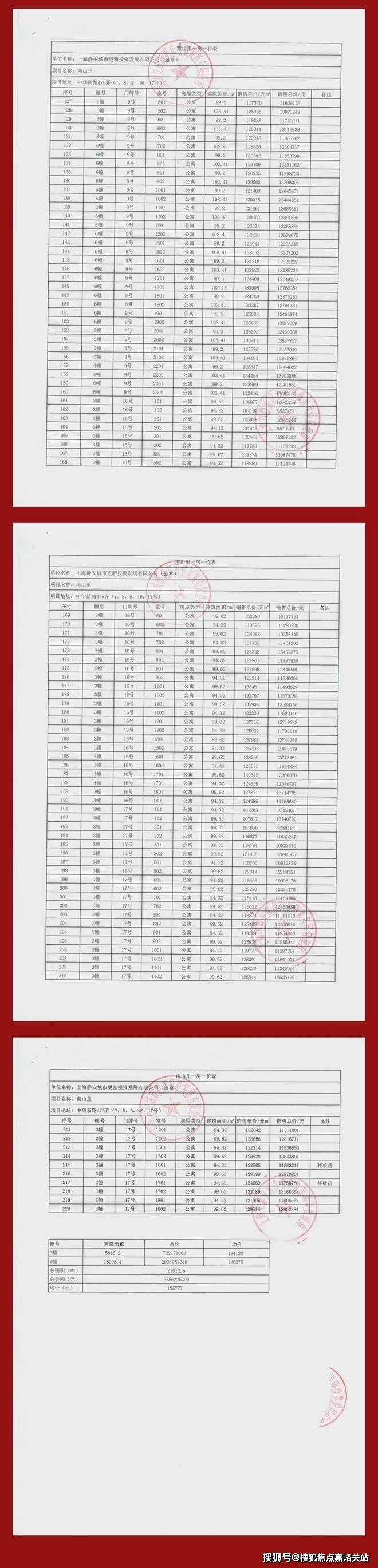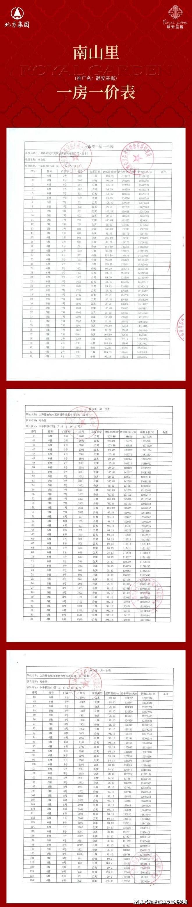最新一房一价表: