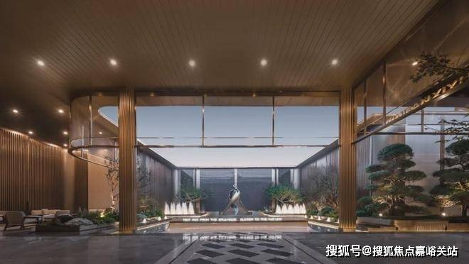 给大家秀一波静安玺樾美学示范区实景图!入口是酒店港湾式落客空间,一棵充满艺术感的造型树,蓝翡翠奢石点缀,提升整体品质感。内部是一座精致典雅的水院,艺术雕塑、喷泉水幕、造型树经典组合,仿若一座海派艺术公园~