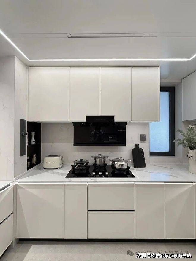 海上清和玺售楼处电话:400-8894-986进门可以看到经典的S墙设计,L型厨房操作台面,也是暗藏不少细节——玻璃移门采用完美系列夹丝玻璃+金属造型边框,顶部配置线性凉霸+LED嵌入式回形灯带+筒灯,海上清和玺售楼处电话:400-8894-986灶台后侧采用大面积岩板铺设,方便清洁的同时显得厨房更加大气。