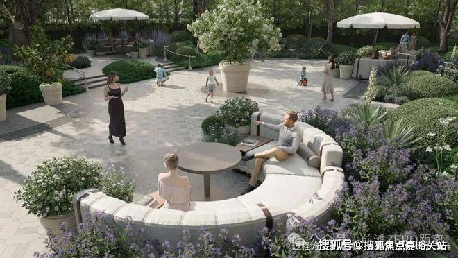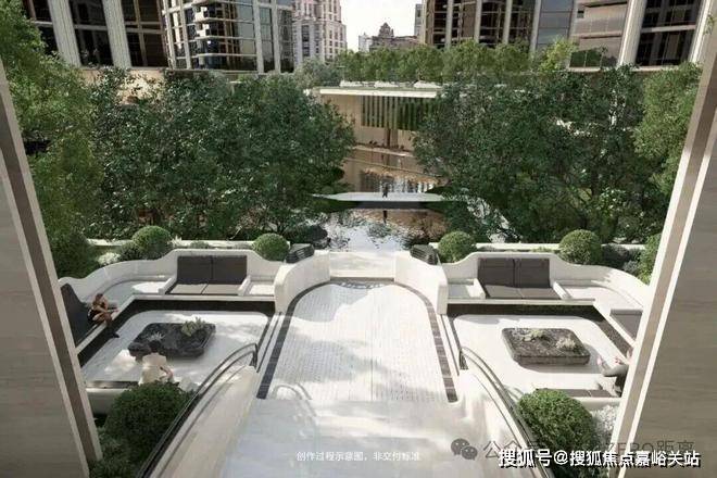 “回归之境”以3500㎡下沉水苑为核心,汇聚会客、泳池、茶室等多功能空间,形成仪式感十足的社区舞台。