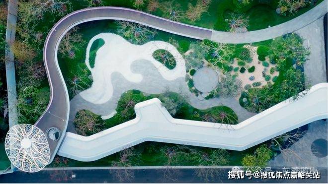 社区内约10000㎡立体都心园林,以英伦名园邱园、希德寇特花园为灵感,以“三轴五园”勾勒“东韵西境”。