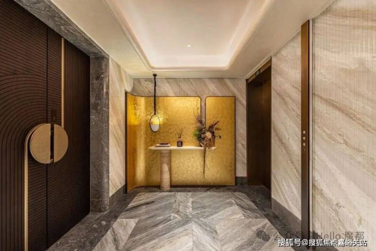 电梯按钮借鉴传统服饰纽扣中的牛骨材料,赋予业主更温润的触觉。