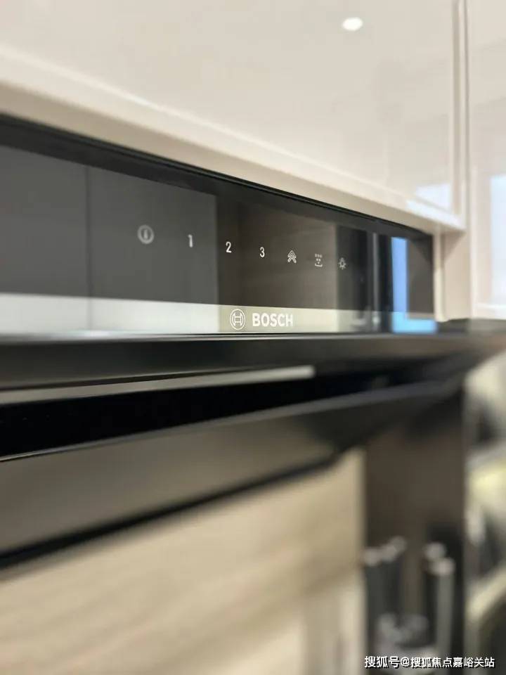 厨房,采用博世 (或同等品牌)的吸油烟机、灶具、洗碗机、蒸烤一体机四件套、怡口(或同等品牌)的末端净水器、摩恩(或同等品牌)的垃圾处理器都统统配备。
