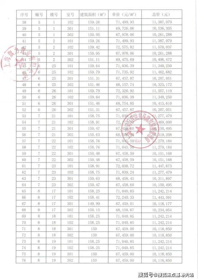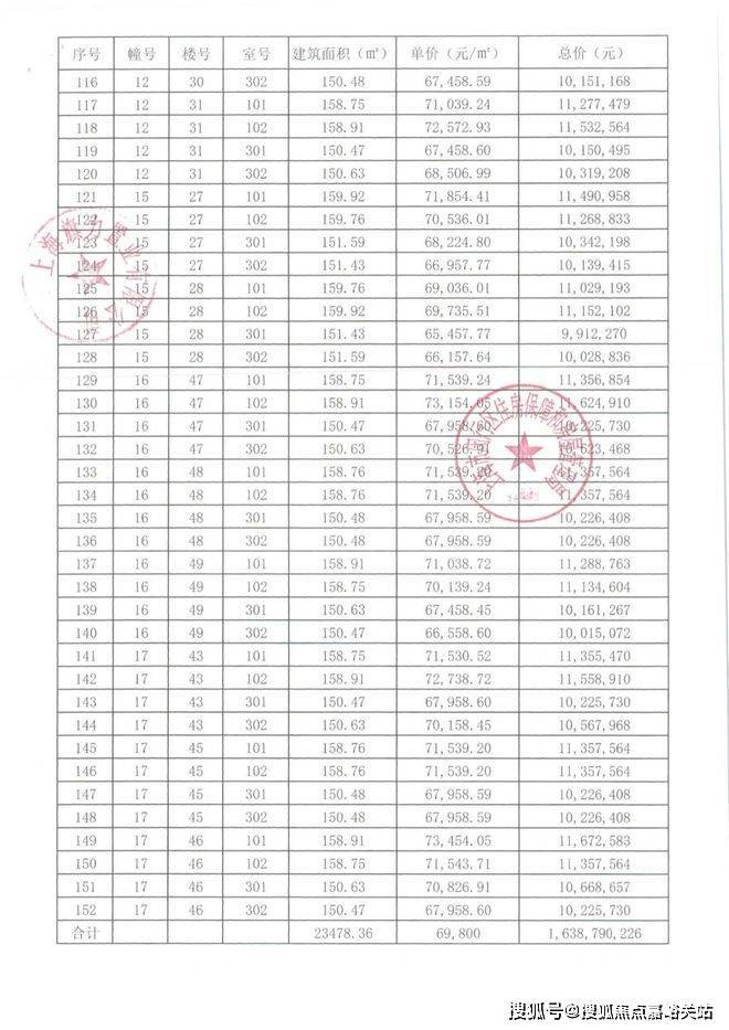本次入市房源152套 一房一价如下
