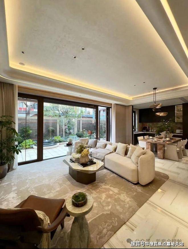 一楼 面向庭院全景大玻璃落地窗 真正意义上实现借景入室,是空间互融更是诗意盛放,客餐厅等空间集中于南侧于风景的相拥中宽享知味时光,至享生活浪漫。