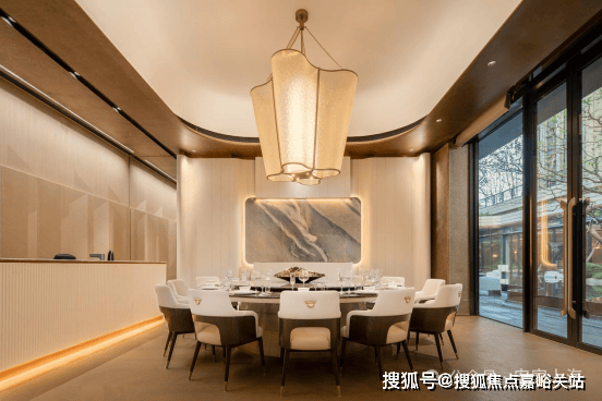 私宴厅&棋牌室承载了业主宴请、聚餐、洽谈、品茗、娱乐等多元社交场景。私宴厅当中悬挂的石材,来自项目团队多番挑选,来自一个 奢石展馆里的孤品,不仅拥有昂贵的蓝色色泽,天生的羽毛状纹理更是罕见!