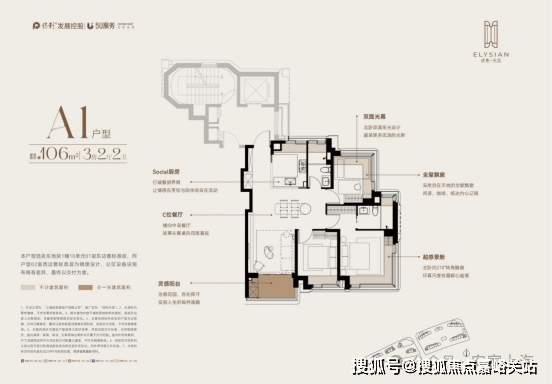 6个飘窗满飘窗赠送+北次卧270°转角飘窗,半开放式厨房+大空间餐厅+S墙设计,均价是所有户型中最低的7.85万/㎡。