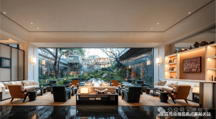 整个会所环抱山水庭院,无边界设计让自然与空间无缝交融。