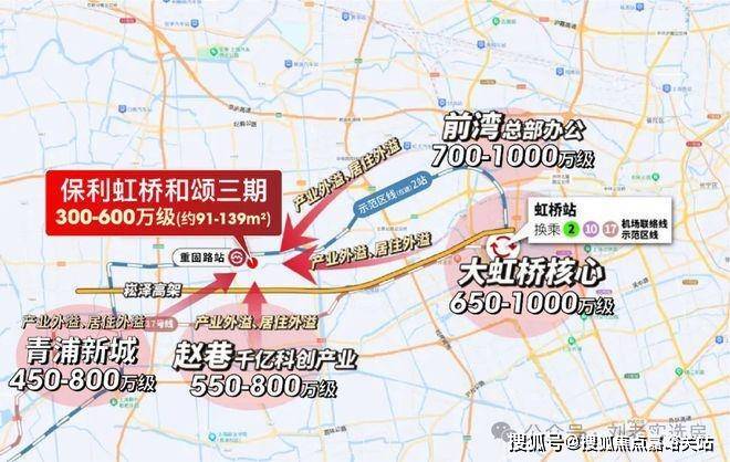 从周边区域房价来看,东面2站之隔的前湾,房价已达700-1000万级;徐泾650-1000万级,赵巷550-800万级,即便下游的青浦新城,房价也处于450-800万级。