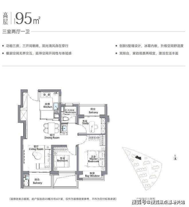 高层户型为建面约95㎡,设计方正且全明,3阳台设计,为业主提供更加舒适的居住环境。☑️☑️招商臻境售楼处电话:400 - 8377 - 020☑️☑️