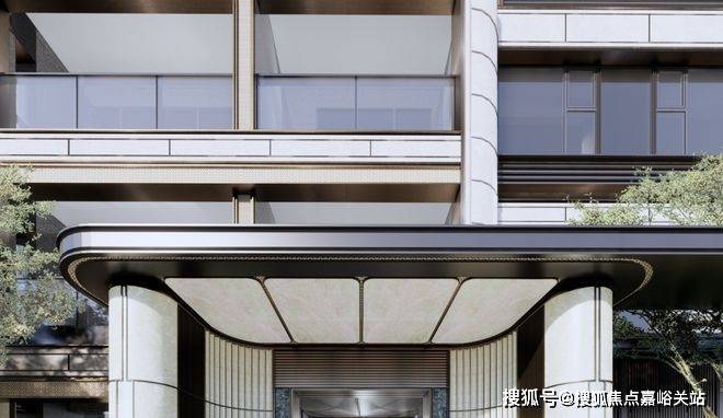 在楼栋主入口同样运用石材+弧形铝板等元素,同时还有格栅装饰,质感提升明显:☑️☑️招商臻境售楼处电话:400 - 8377 - 020☑️☑️