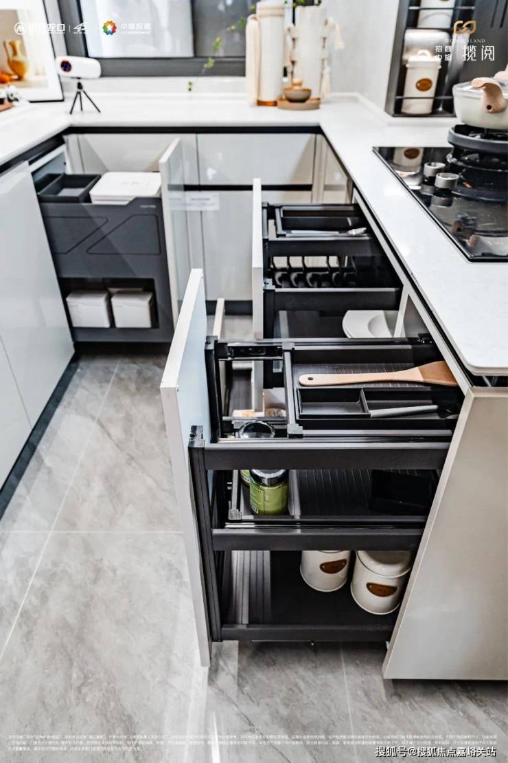 有互动感的开放式厨房:经典U型厨房设计,享受自在烹饪生活。☑️☑️招商中旅揽阅售楼处电话:400 - 8377 - 020☑️☑️