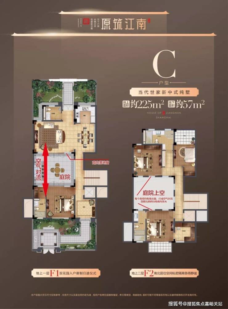 项目作为联排纯墅,得房率约90%,对居住而言,使用面积大大增加。在居住功能布局和设计上,项目以225-417平方米大面积户型为基础,实现了很大的突破性。院落是中式建筑的精髓,56户人家都设计有私享庭院,前后院用绿篱分隔,面积约50-60平方米,提供充足的私密空间。