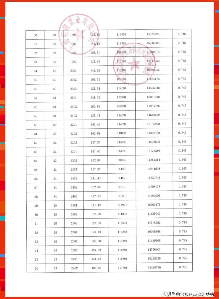 准售房源一房一价表