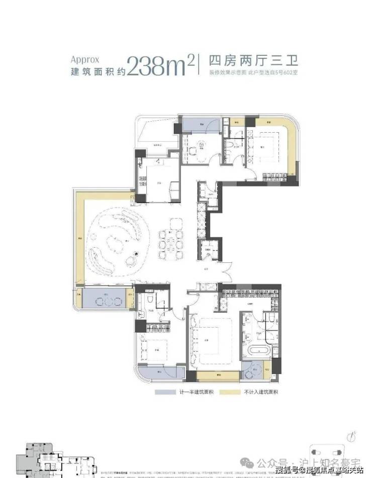 建面约238㎡户型均价约17.3万/㎡,建面约275㎡户型的均价约18.2万/㎡,比起前面衡复徐滨的次新房动辄22万、24万/㎡的挂牌价,倒挂不要太明显,安全垫不言而喻!