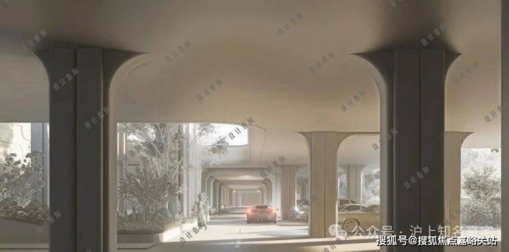 通过在首层设置结构转换层(抬板层),将整个住宅建筑主体抬升后优化车库流线:更充裕的空间便于设计更合理的车道、坡道和车位布局,提高停车效率!