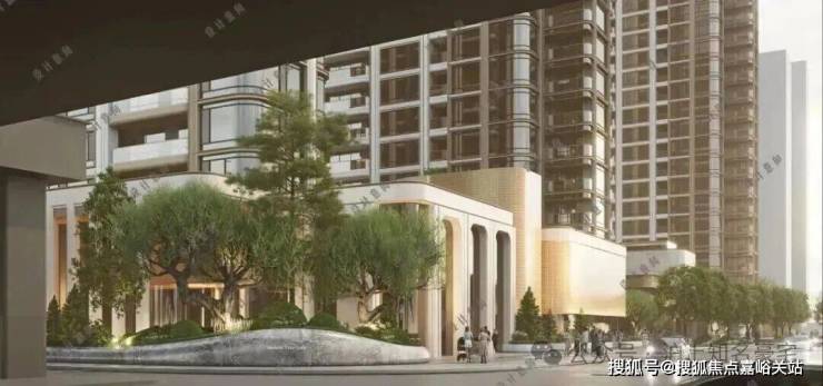 极致隐奢入口,融入城市感的配套街道;私密性好的同时也因为抬板减轻了西侧学校和东侧马路的噪音影响和视线干扰!