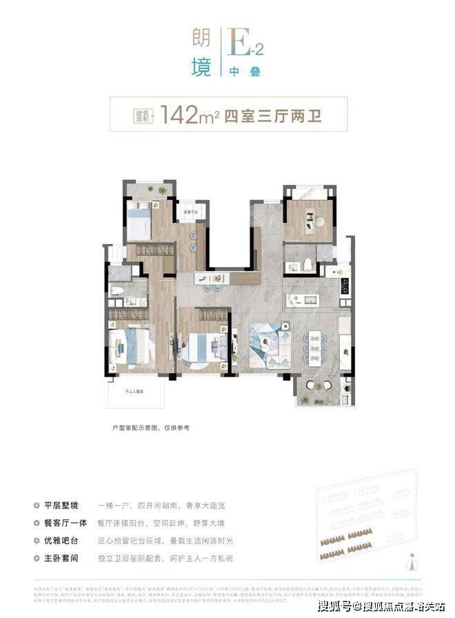 南北双阳台,南向主卧阳台和北向生活阳台,景观和晾晒功能有效区分;