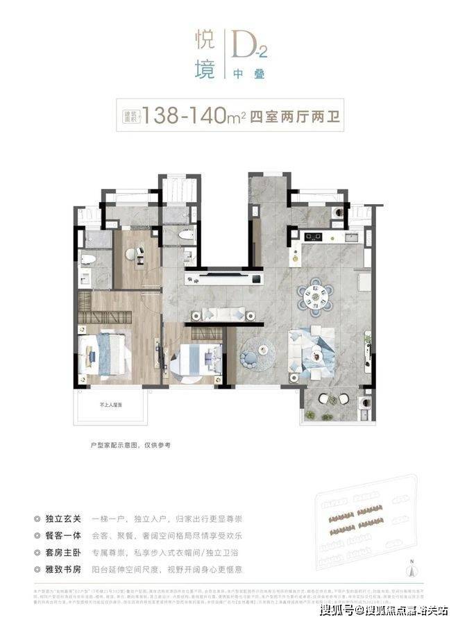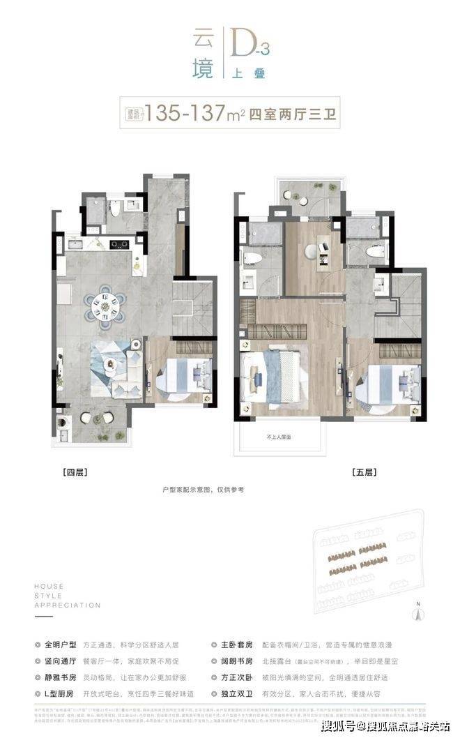 叠加横厅 (建面约)141m² 下叠 四室两厅三卫