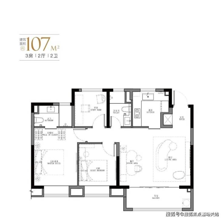 产品:103㎡、107㎡的三房两厅两卫及123㎡、129㎡的四房两厅两卫
