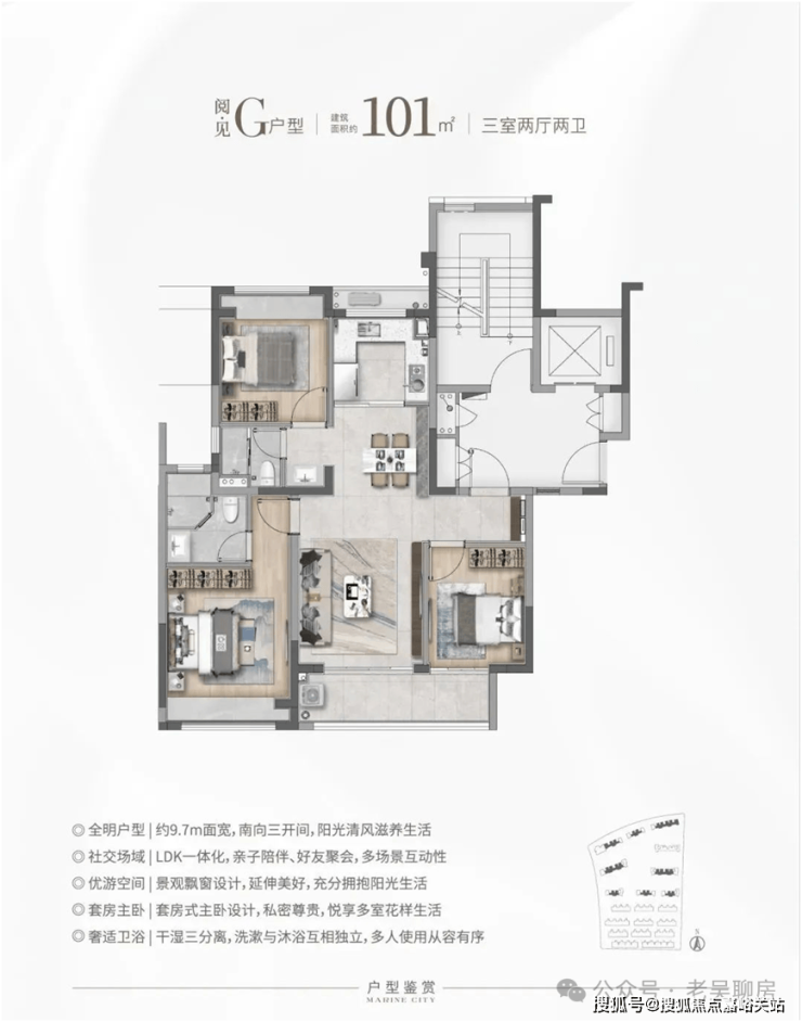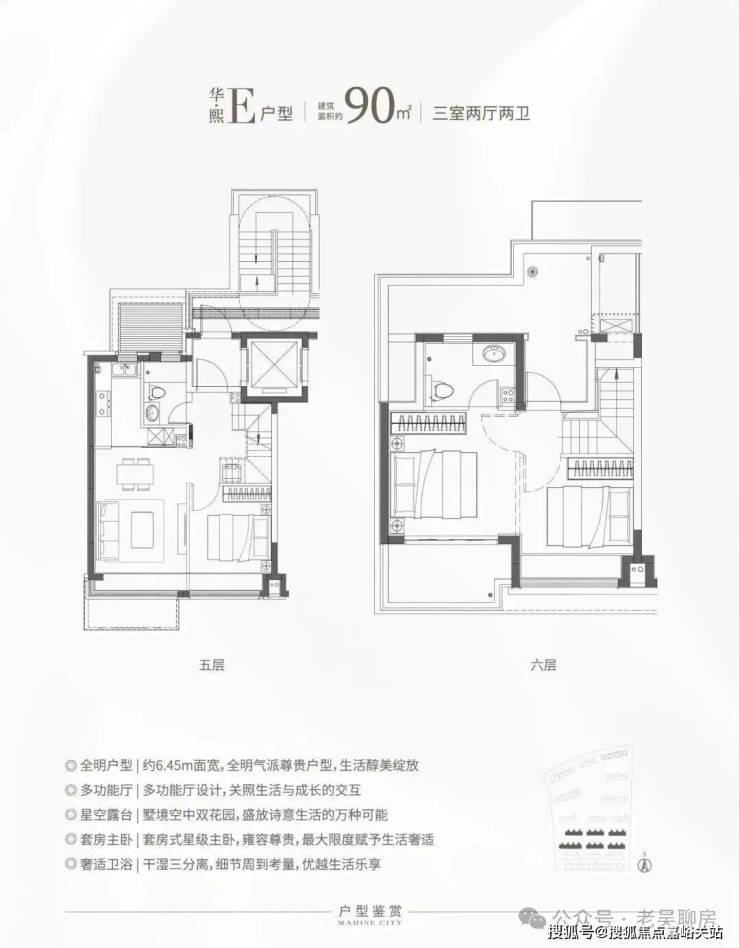 特别是这个 E户型,建面仅约90㎡,对于想住叠加但预算有限的购房者来说,面宽约6.45米,上下动静分离带,是个不错的选择!